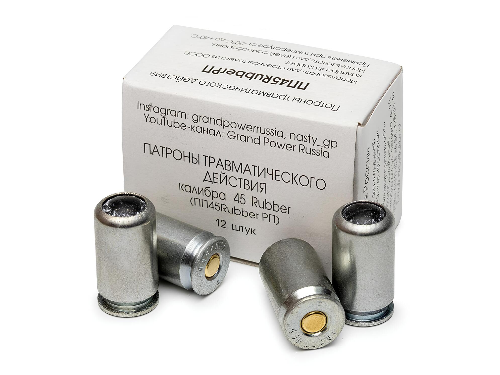 45 Rubber — весьма удачный калибр, отличающийся хорошим сочетанием массы и скорости пули и обладающий выраженным останавливающим действием. Патроны от разных производителей схожи между собой и все неплохо подходят для самообороны. Единственное существенное нарекание вызывает подача боеприпаса: отношение длины патрона к диаметру. Также особенности завальцовки иногда приводят к утыканиям патрона.