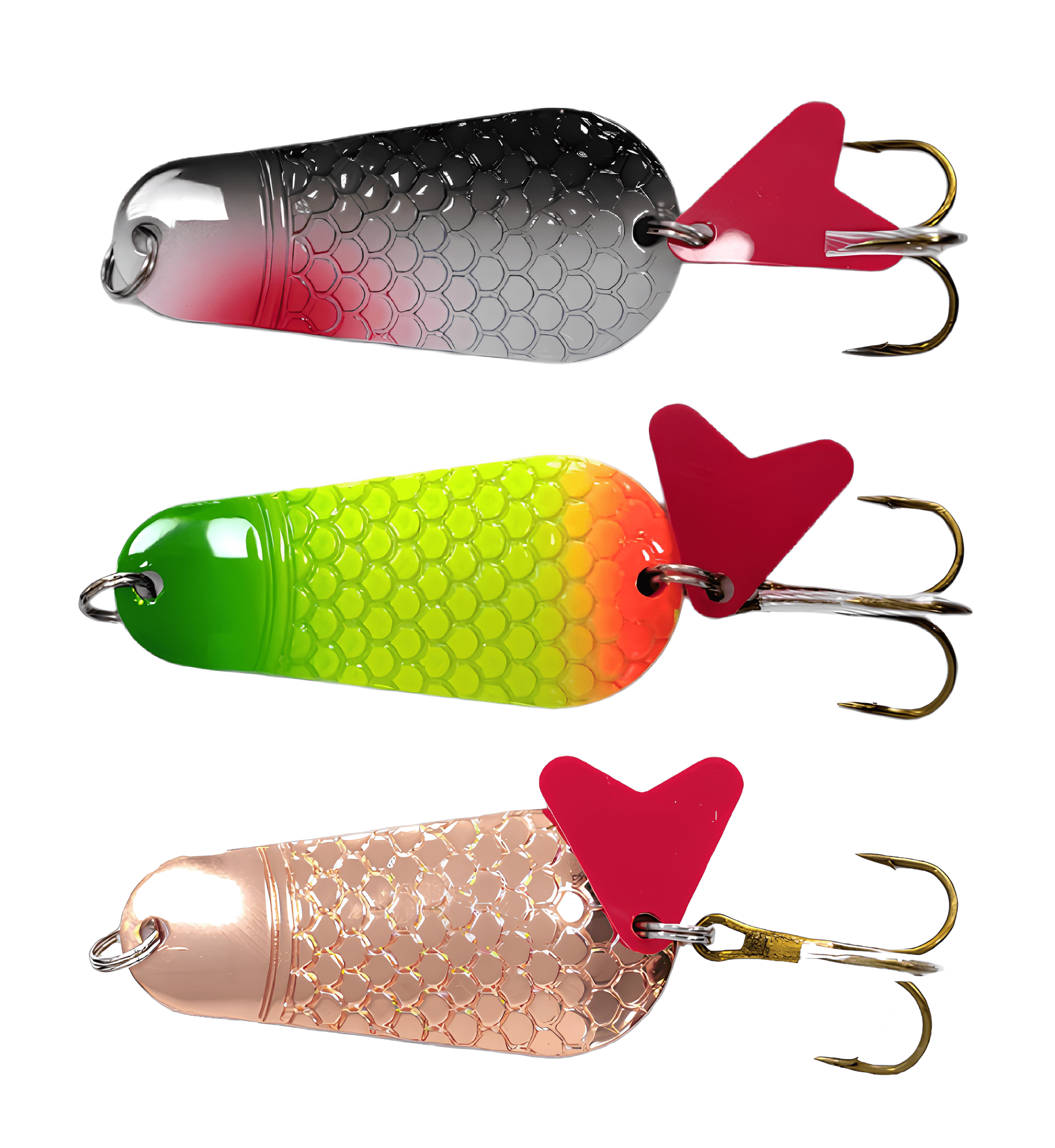 Колеблющиеся блесны отличаются разнообразием форм, но на некоторых из них можно увидеть дополнительные элементы, такие как плавники. Эти плавнички служат для стабилизации игры приманки как в поперечном, так и в продольном направлении, уменьшая вероятность срыва во вращение при активной проводке.