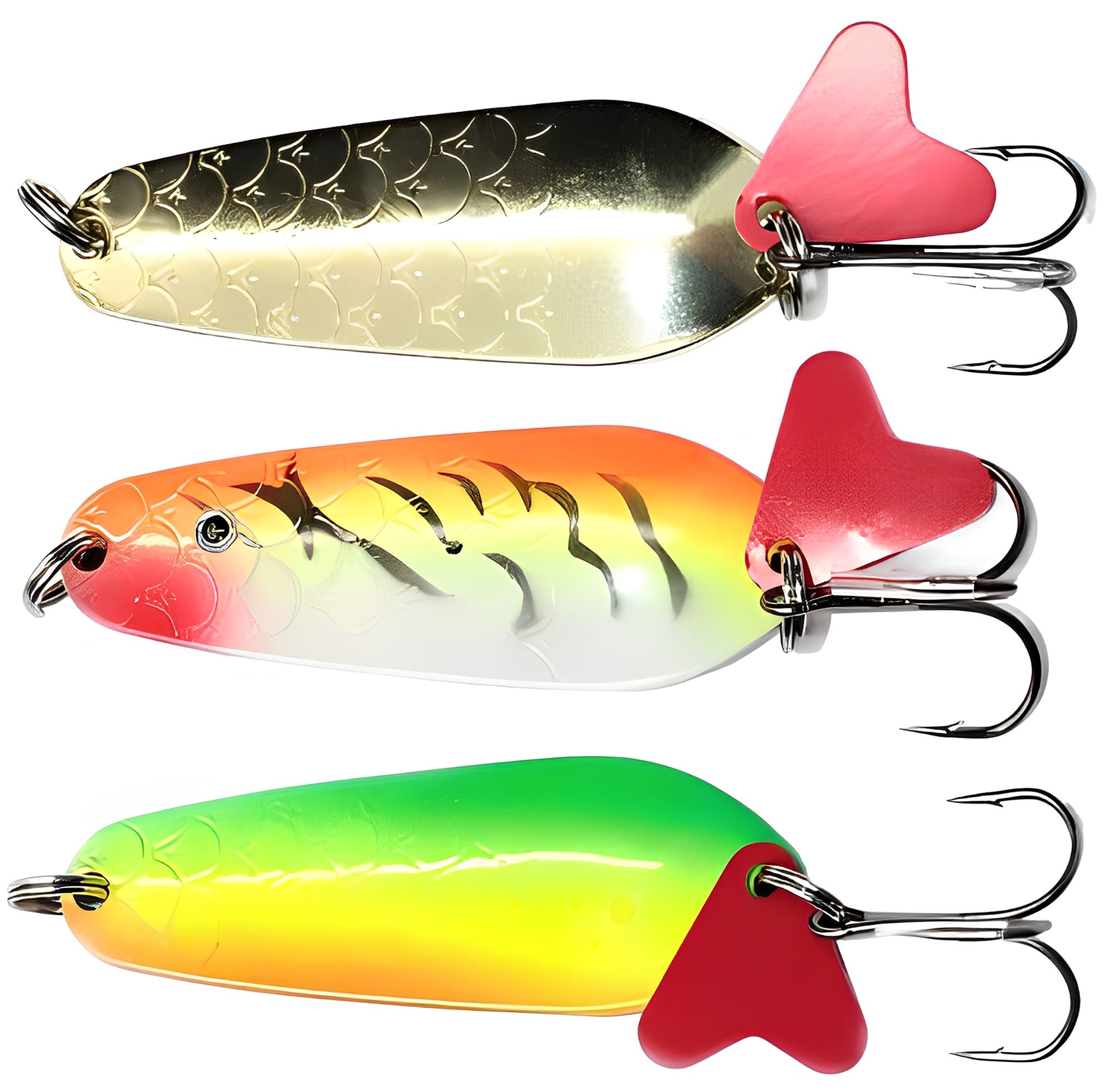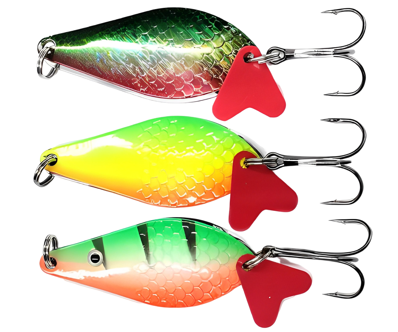 Часто у тройника можно заметить пластиковый хвостик или хвостик из цветных или блестящих ниток. Считается, что такой дополнительный «обвес» увеличивает турбулентность воды, создавая дополнительное раздражение для хищника.
