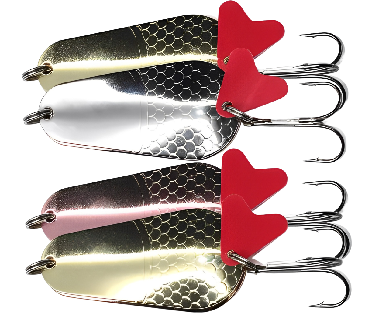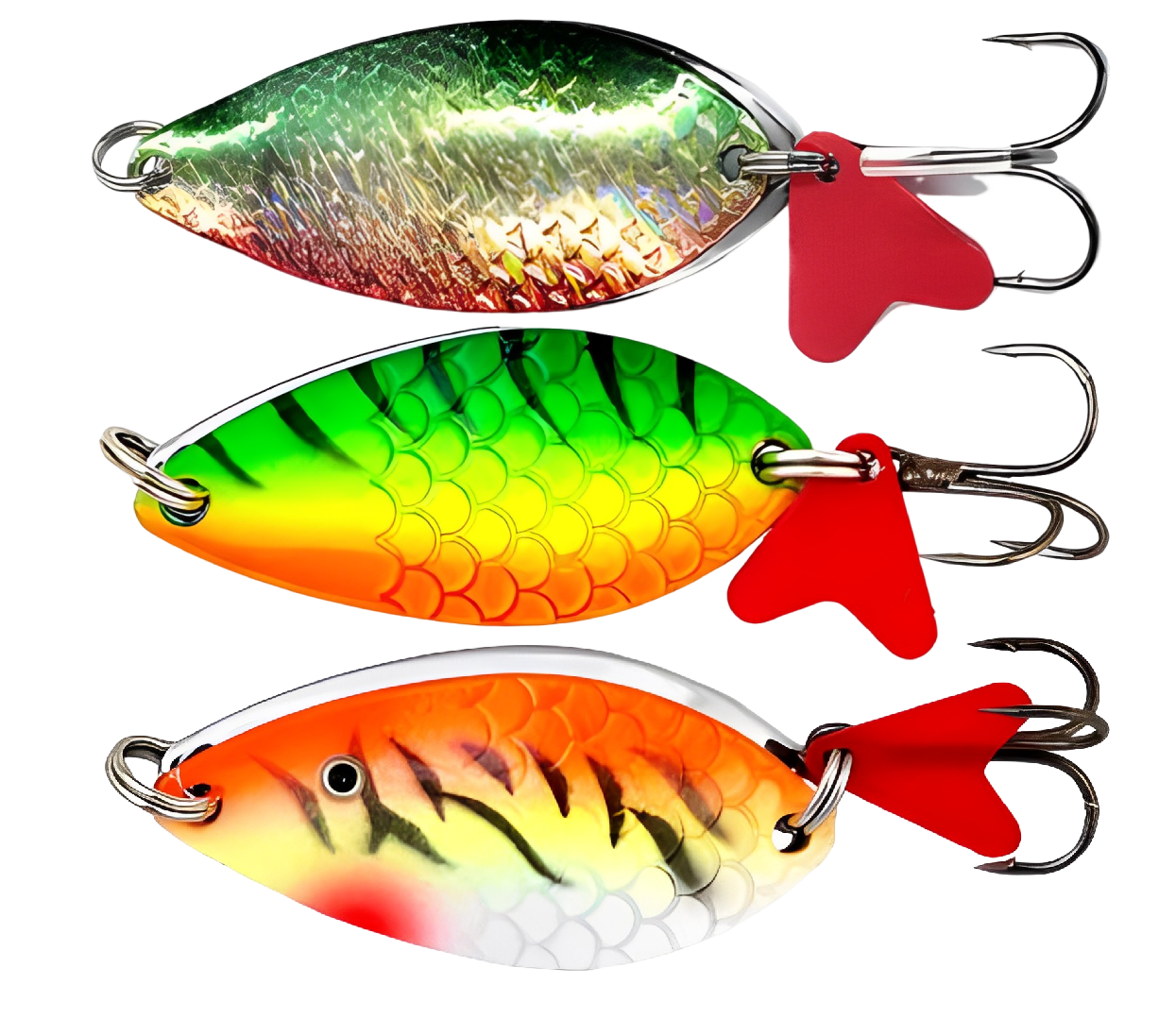 Колеблющиеся блесны отличаются разнообразием форм, но на некоторых из них можно увидеть дополнительные элементы, такие как плавники. Эти плавнички служат для стабилизации игры приманки как в поперечном, так и в продольном направлении, уменьшая вероятность срыва во вращение при активной проводке.