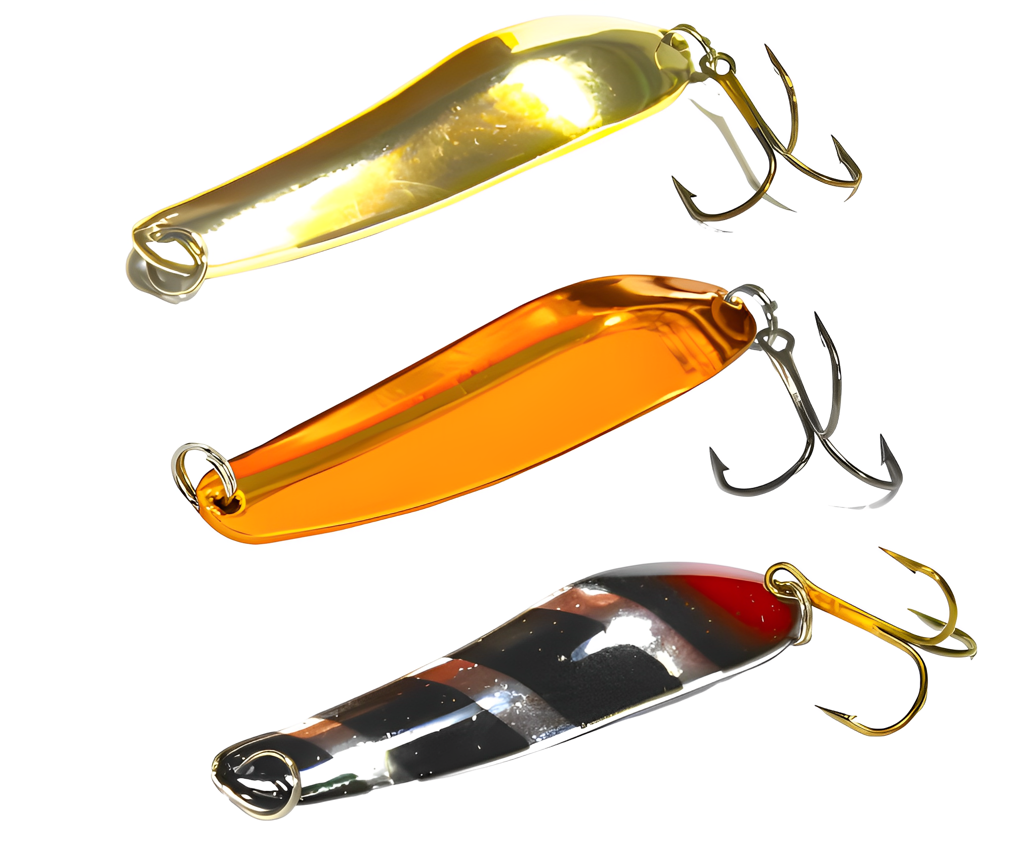 •  Средние. Коэффициент отношения длины к ширине — 2,5-3,5. Это наиболее востребованные и распространённые блесны. Игра таких блесен не столько усреднена, сколько зависит от мастерства и техники рыболова. Они универсальны, что позволяет их использовать при различных условиях на рыбалке и при различных проводках.