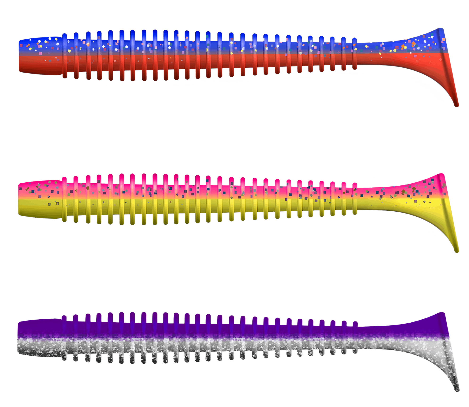 Виброхвосты — это приманки с прогонистым и слегка сплюснутым по бокам телом, которое заметно сужается к хвостовой части. На конце хвостика располагается специальная лопатка, известная как «пятак» или «копытце», которая обеспечивает активную игру наживки. Колебания виброхвоста менее размашисты, чем у твистера. Амплитуда и частота движений зависят от размеров и формы лопатки, угла между ней и телом, а также от эластичности силикона, из которого изготовлена приманка. Виброхвосты могут быть различной формы: узкие, пошире, плоские или с выпуклым брюшком. Для их изготовления используется как съедобный, так и несъедобный силикон различных оттенков, что позволяет создать приманки, максимально соответствующие условиям водоема.