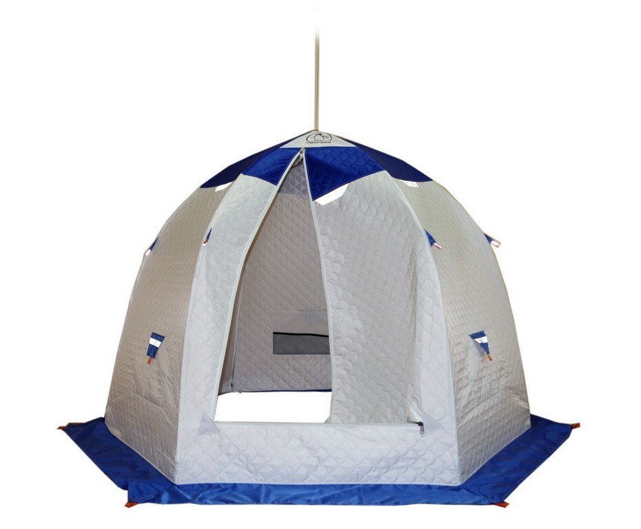 • Палатка-куб. В палатках кубической формы больше места внутри, где можно вытянуться и встать в полный рост. Поэтому их часто выбирают любители ночных комфортабельных рыбалок. Установка занимает не намного больше времени, чем у предыдущих моделей. Однако они отличаются большим весом, парусностью и дороговизной. Кроме того, куб медленнее нагревается, поэтому к нему необходимо брать печку. Но тех рыбаков, кто выбирает «кубы», это не смущает. Обычно они не таскают всё это на себе.