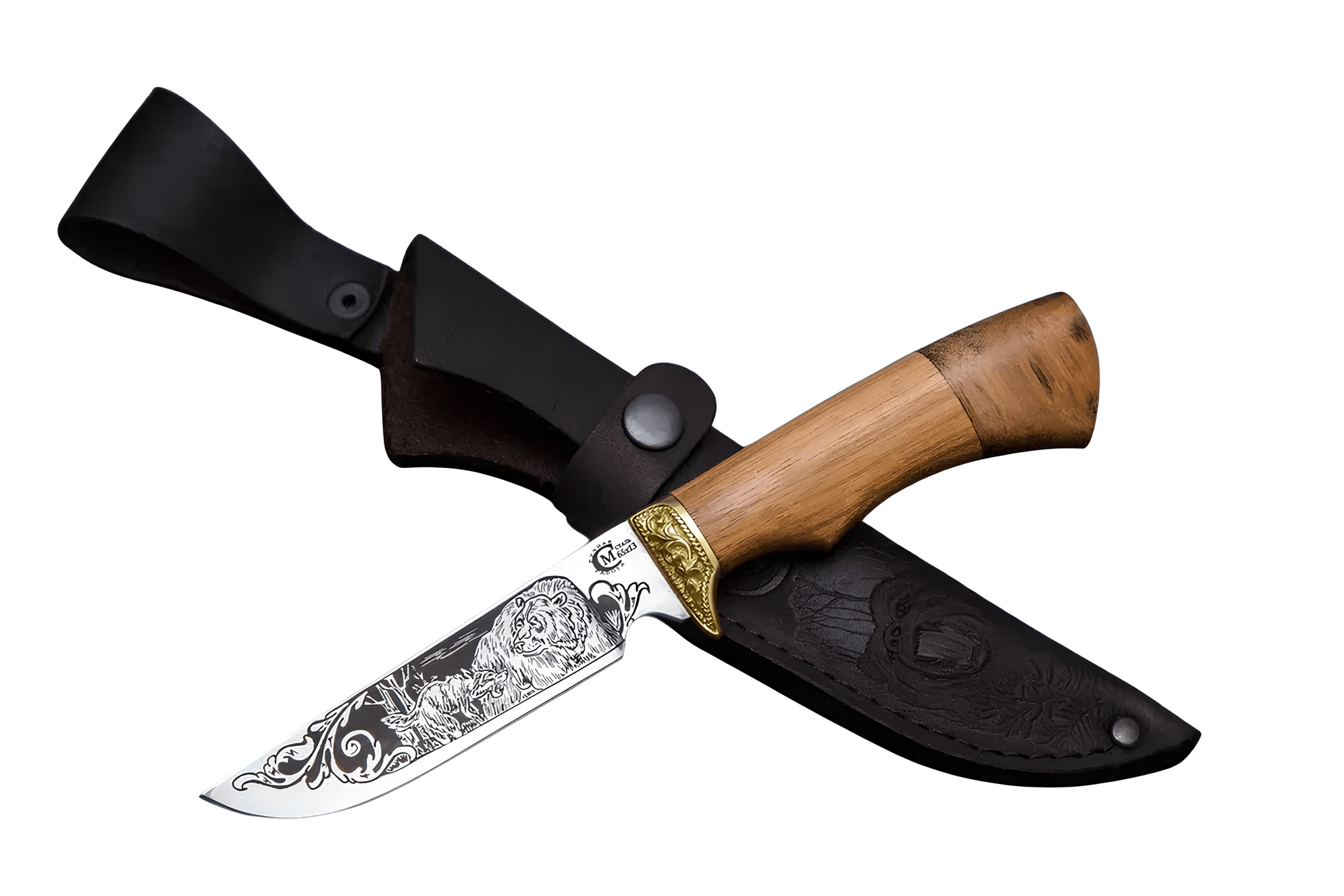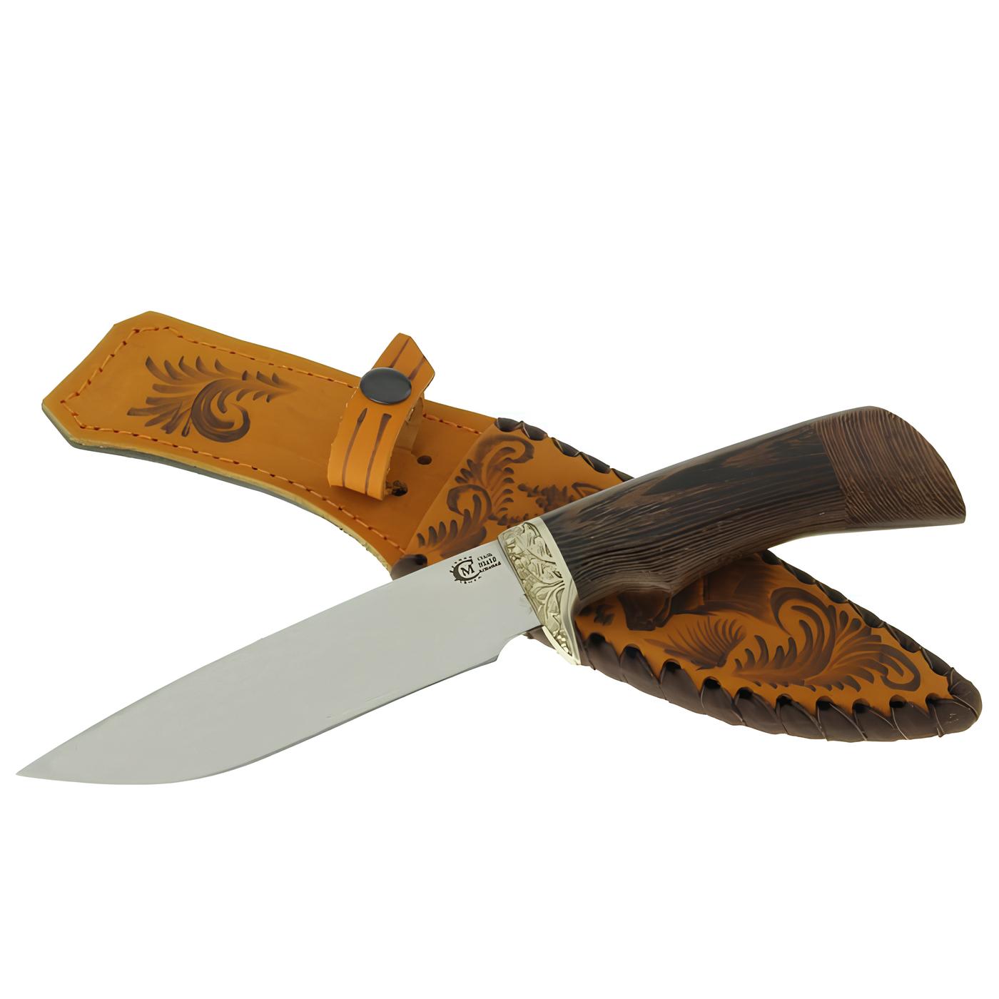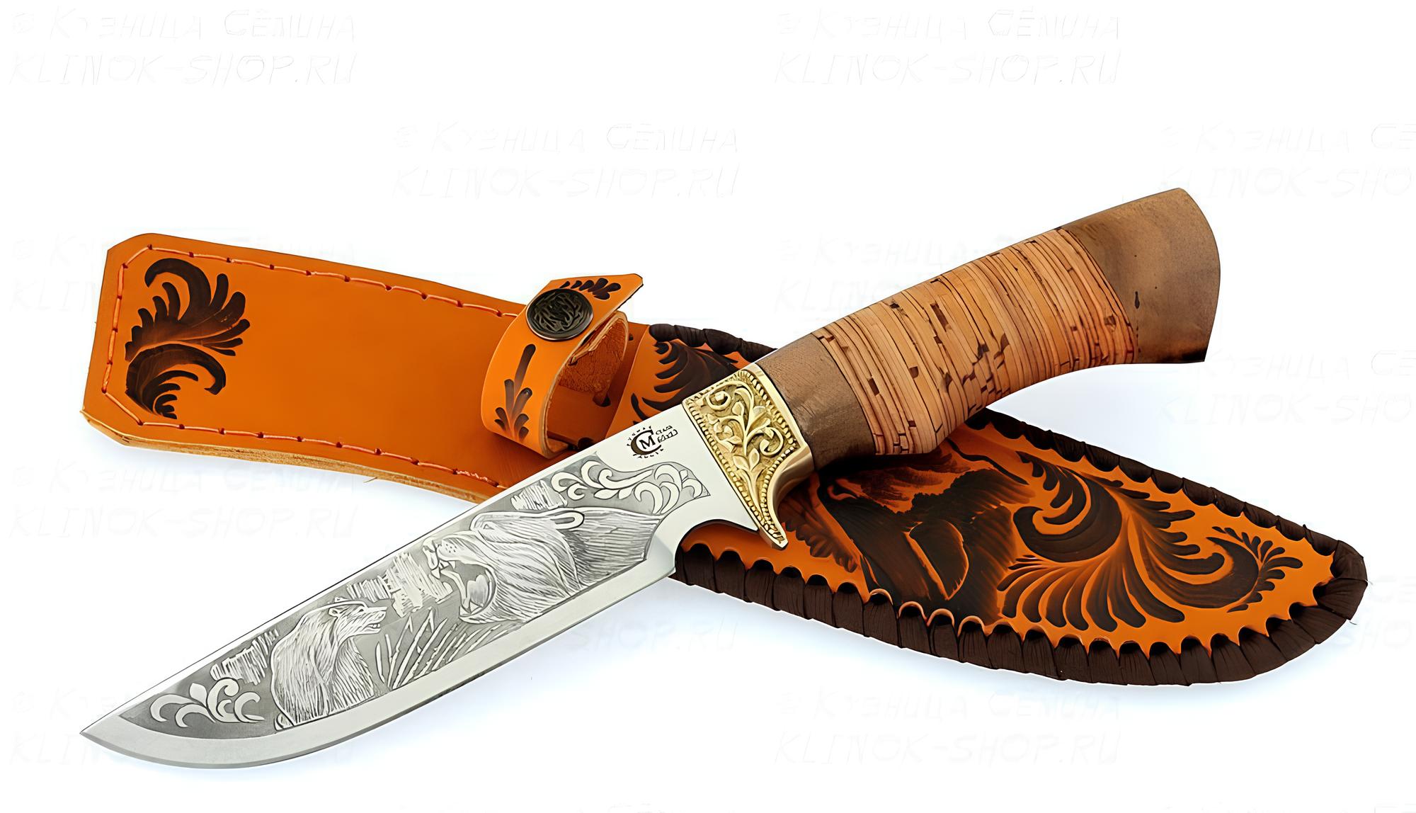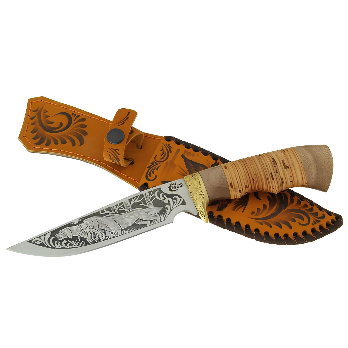 *Нож Следопыт, ст.65х13, береста/амазакуйя, литье, гравировка
