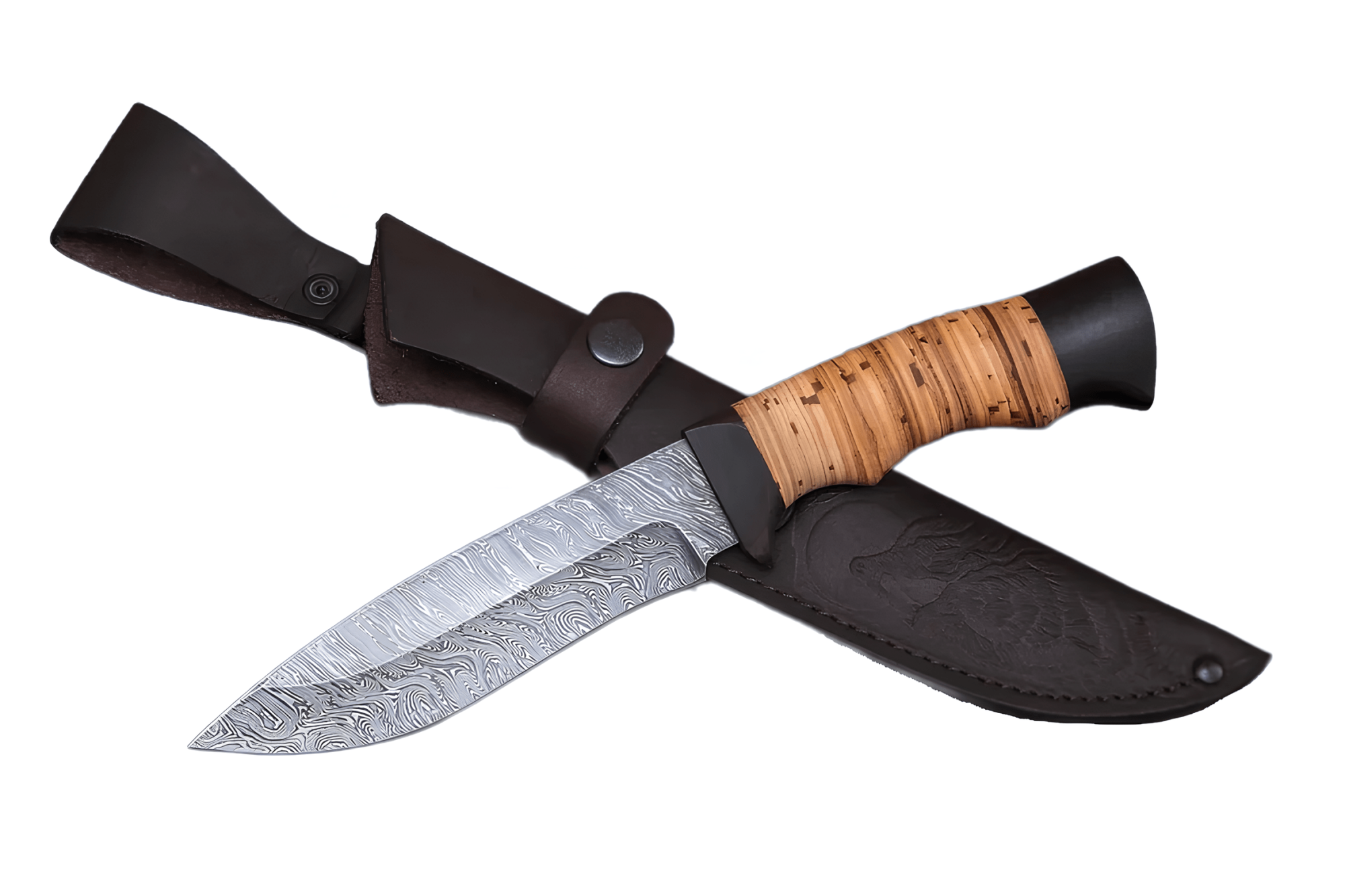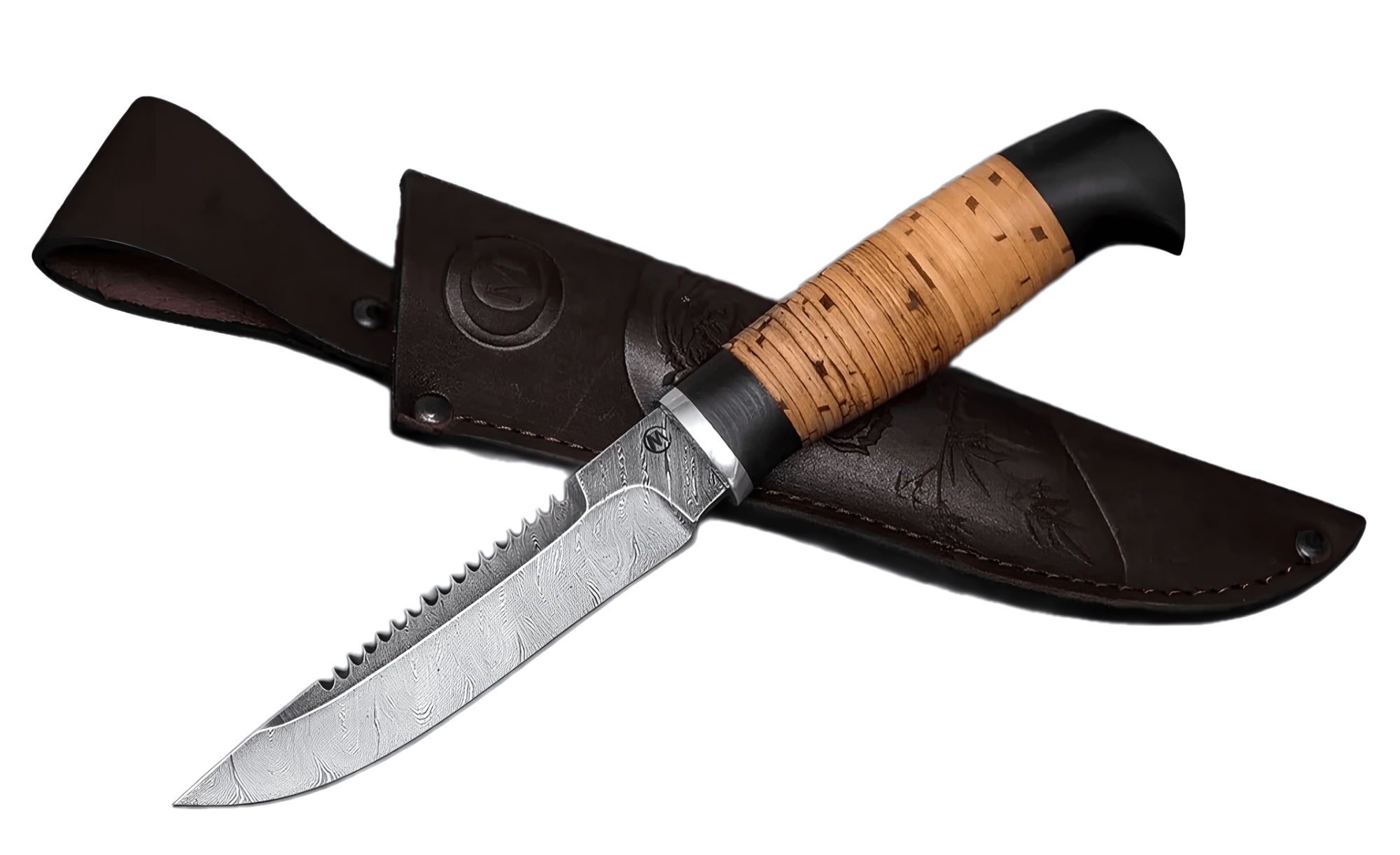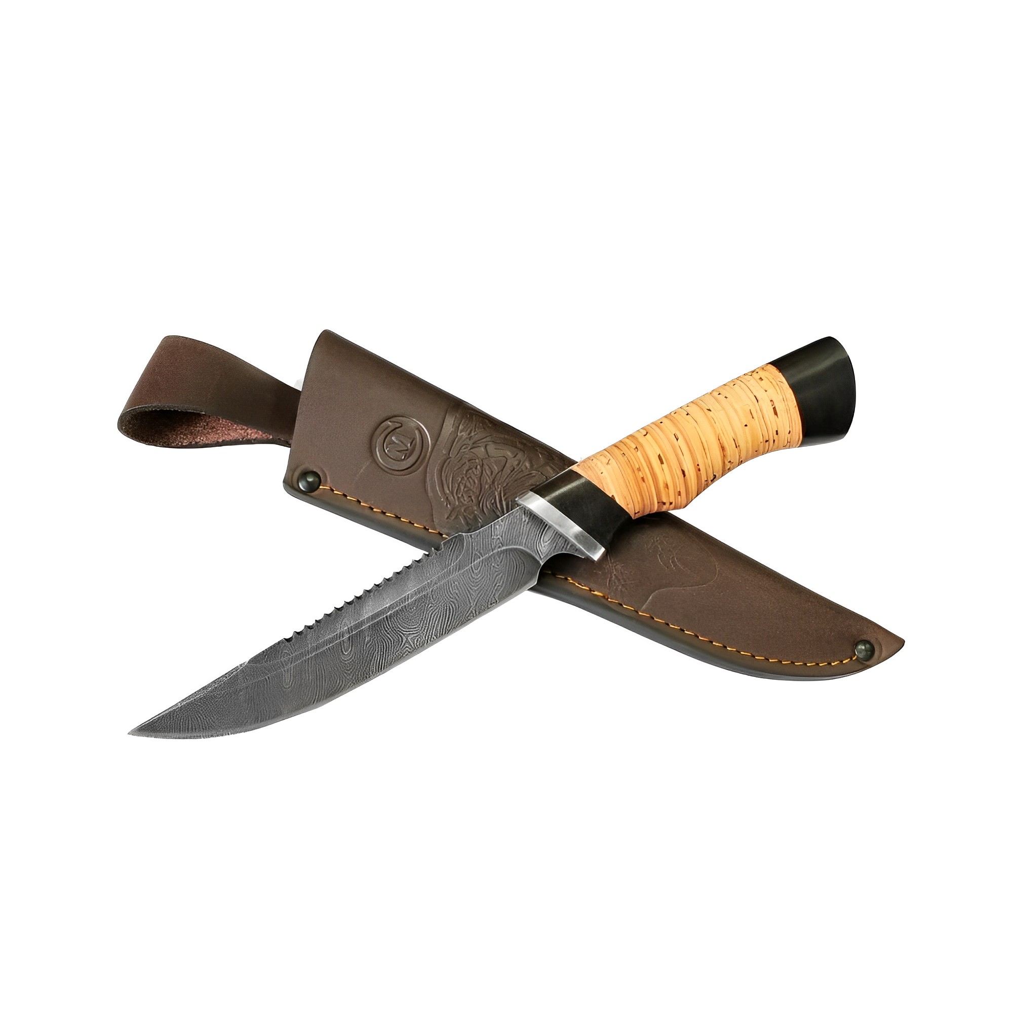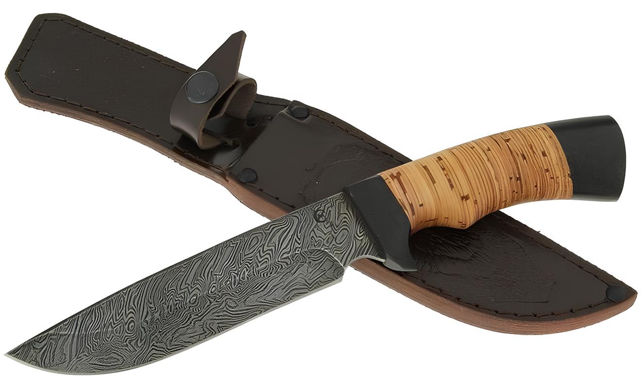 *Нож Судак из дамасской стали, береста, граб, дюраль