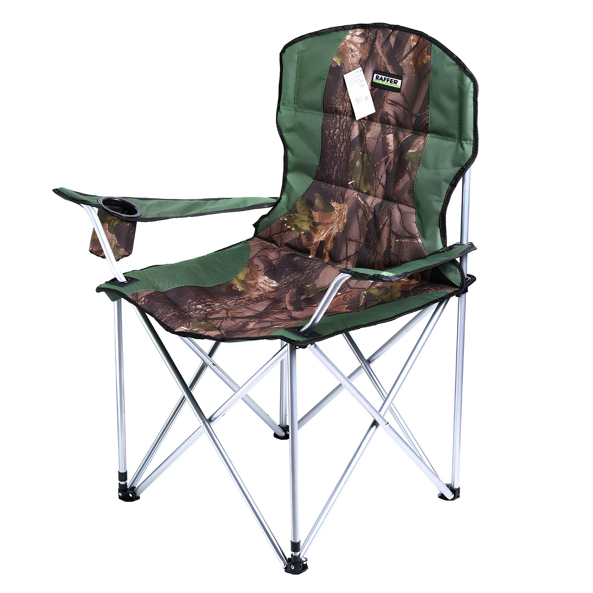 Складные кресла с подлокотниками обеспечивают более удобный и просторный отдых, часто имеют дополнительные аксессуары: подножки, подголовники, сетчатые подстаканники и карманы. Некоторые модели оснащены регулируемыми поясничным упором и спинкой. Несмотря на то, что кемпинговые кресла обеспечивают комфортный отдых, их вес и размеры больше, чем у стульев со спинкой.